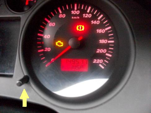 para resetearlo deberemos tener el contacto quitado,mantenemos pulsado el boton que aparece aguantamos hasta que aparezca una linea discontinua horizontal(unos 10 segundos).